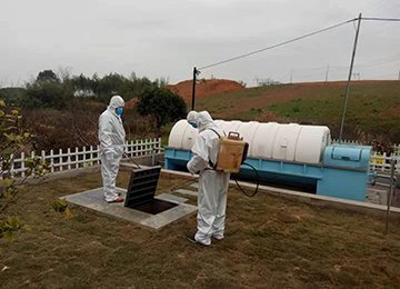 2021年12月22日科然環(huán)境運維組員工為號召國家防控疫情政策,對各個終端和管網(wǎng)的污水池進(jìn)行全面的清掏、消殺工作。運維組消殺人員配有專業(yè)的防護(hù)服、手套、口罩以及專業(yè)的消殺工具。
